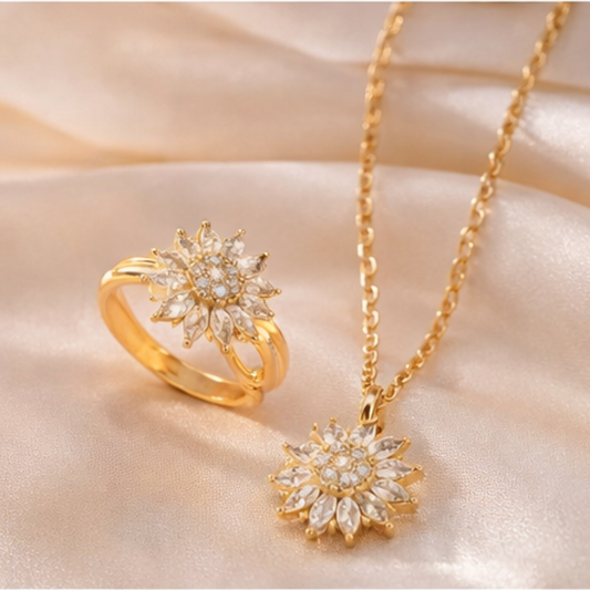 AHORRAS $60.000Kit Girasol Eterno: Collar y Anillo Giratorio🌻 Incluye Caja 🎁